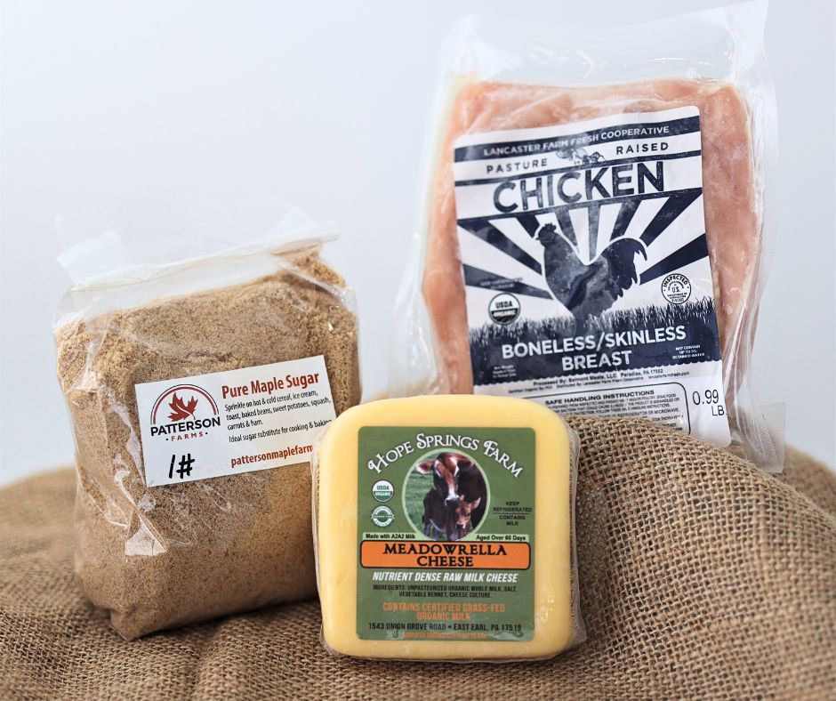 - One meat item: fully pastured, antibiotic and hormone-free, averaging 1lb per package